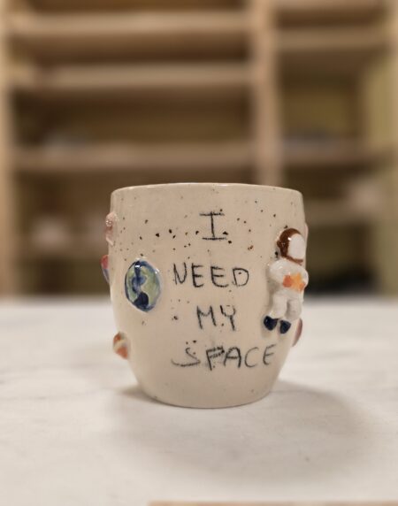 Håndlavet keramikkop dekoreret med planeter, raket, sol og astronaut samt teksten “I Need My Space”. Koppen rummer ca. 3 dl og er perfekt til kaffe eller te. En legende og personlig kop til dig, der elsker universet – eller bare har brug for lidt plads.