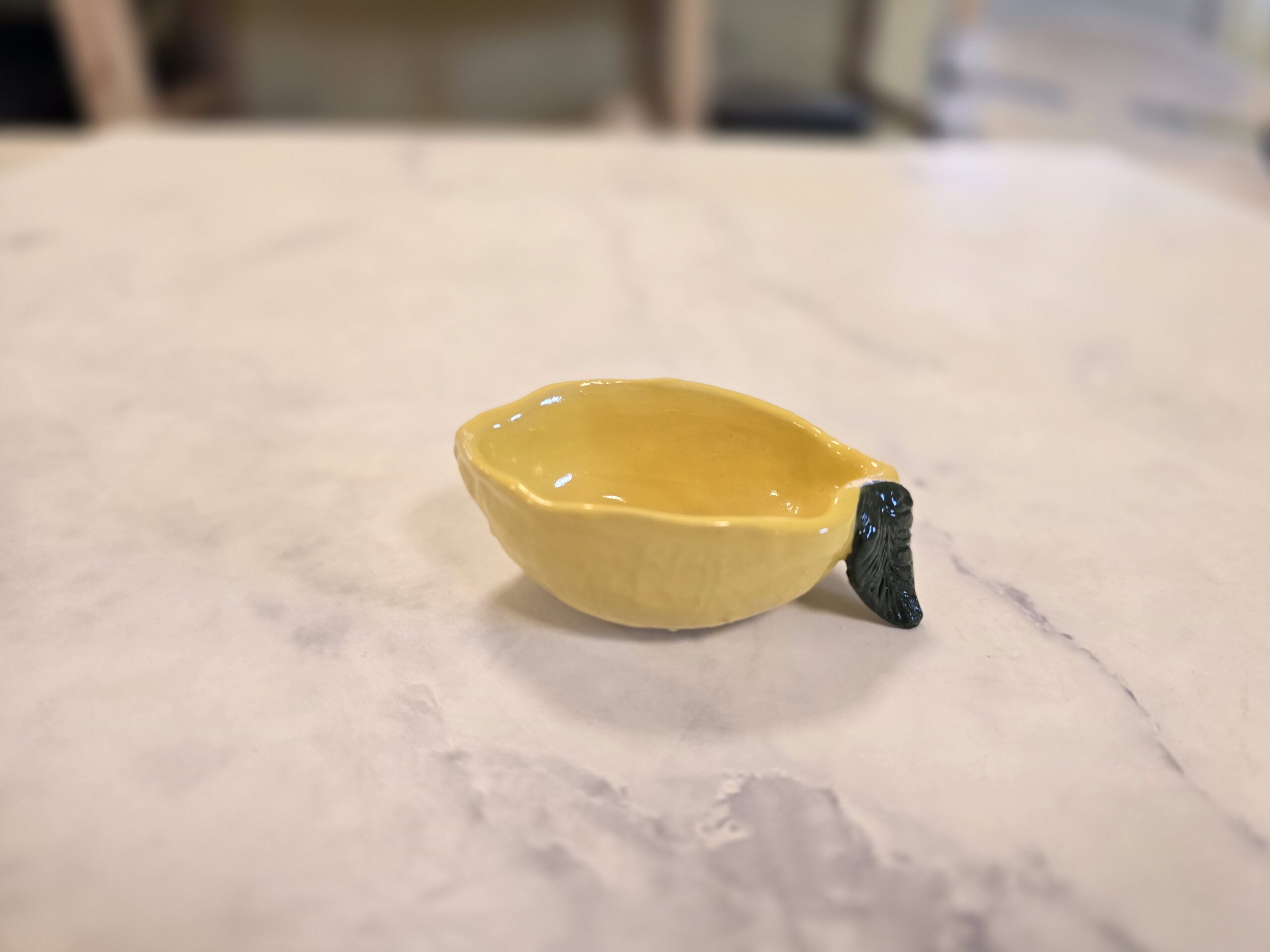 Lille citronskål formet som en citron med blad-detalje. Perfekt som saltkar, til smykker eller små serveringer.