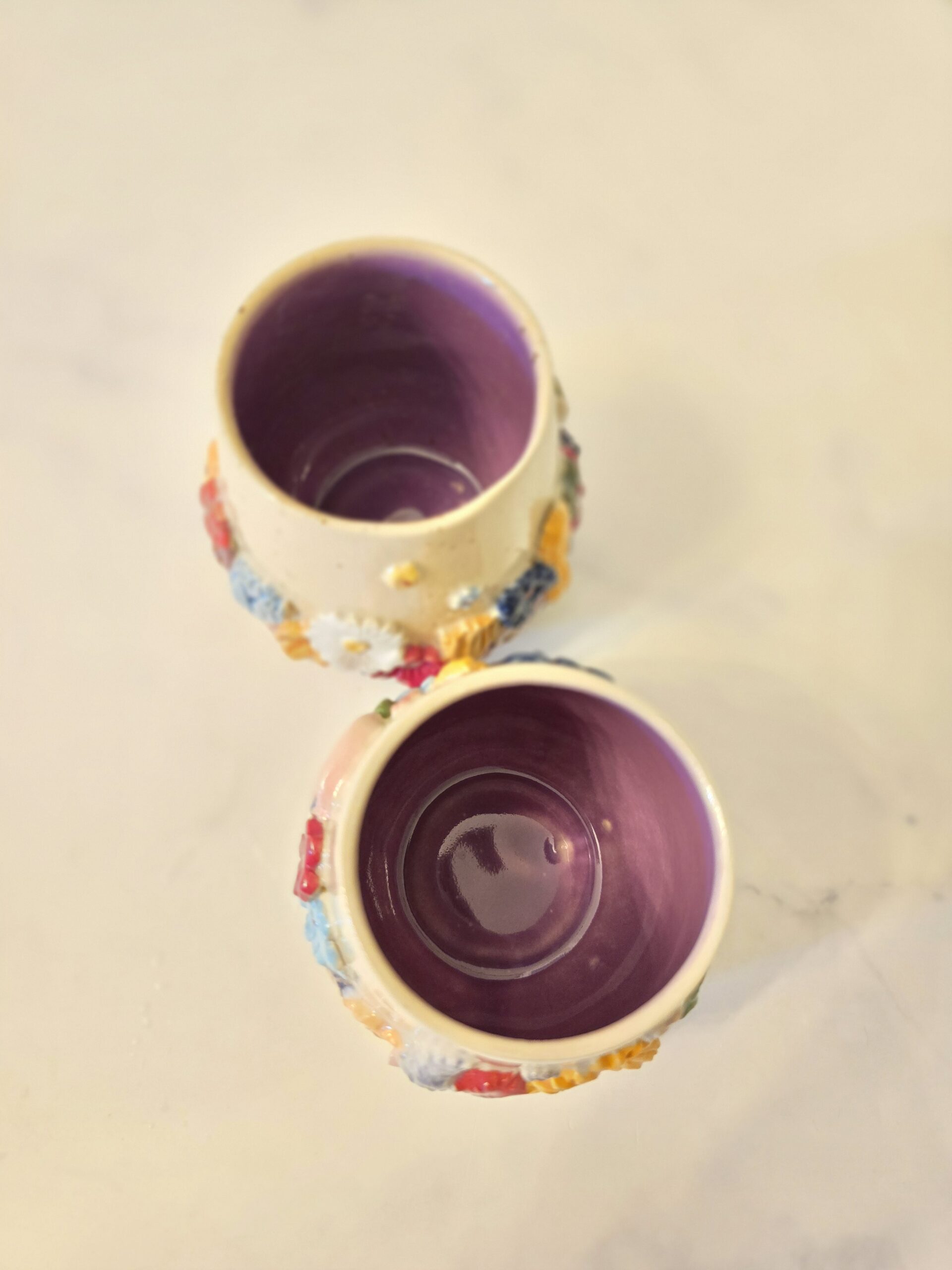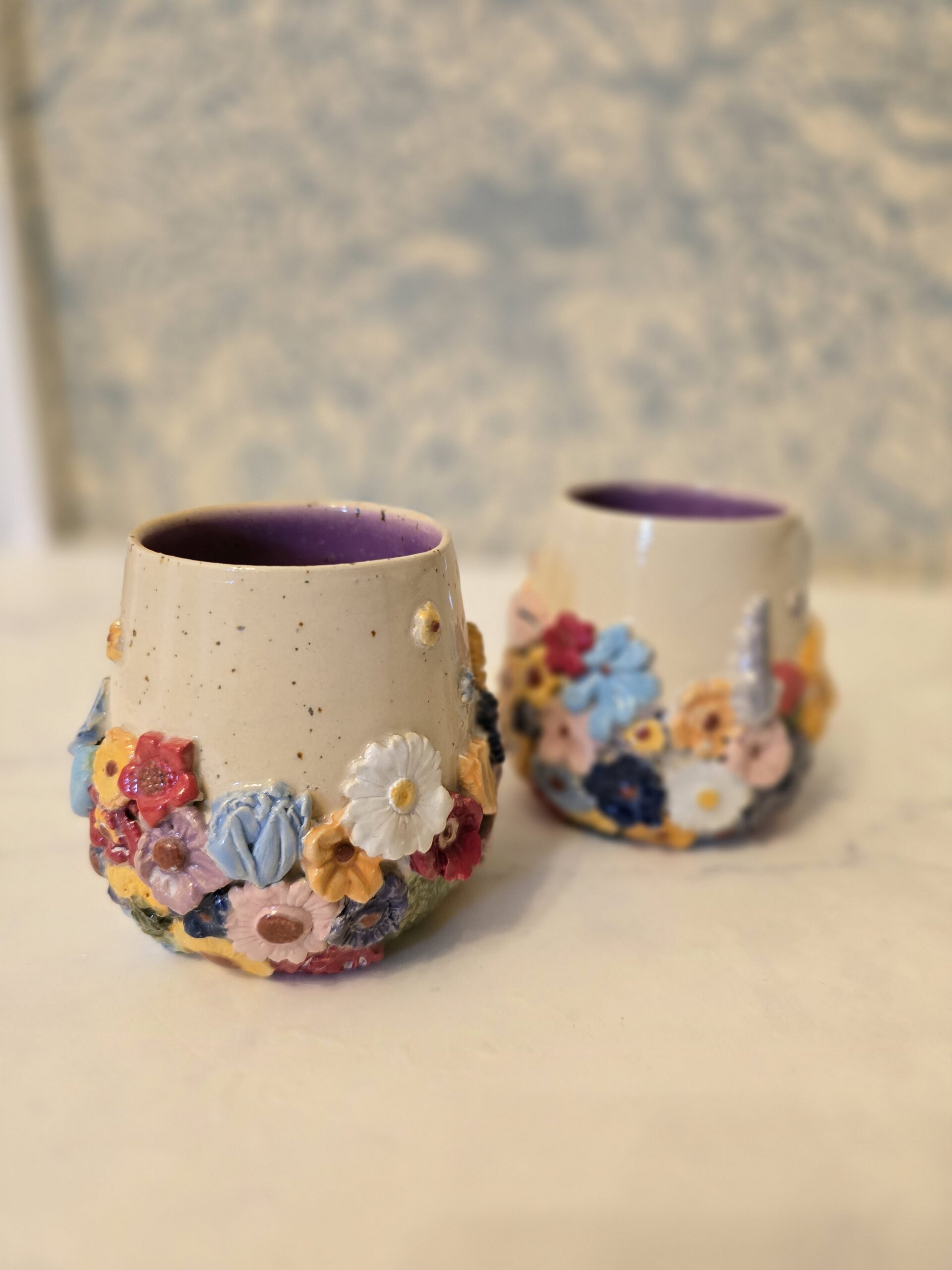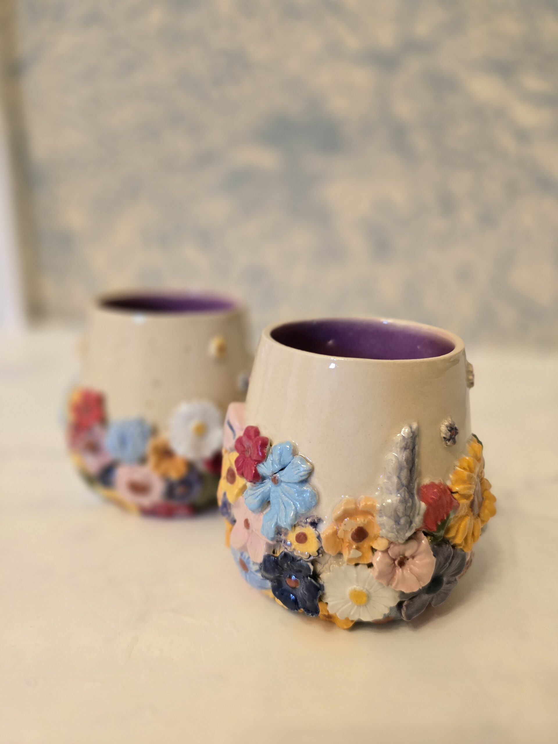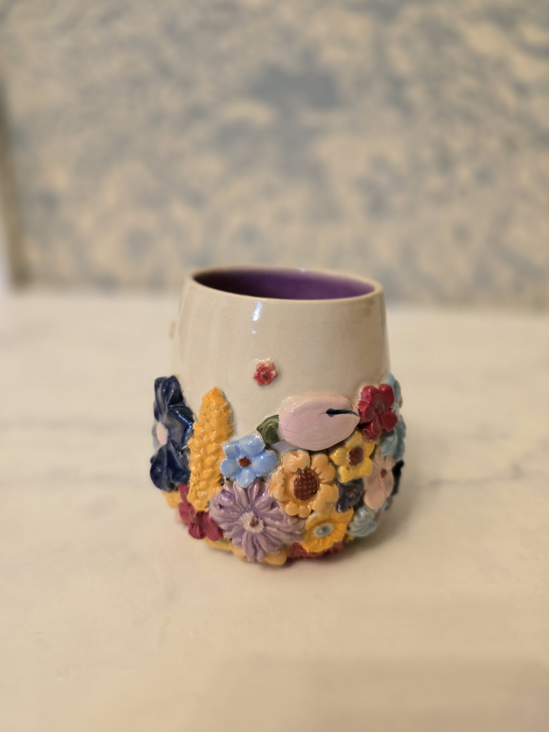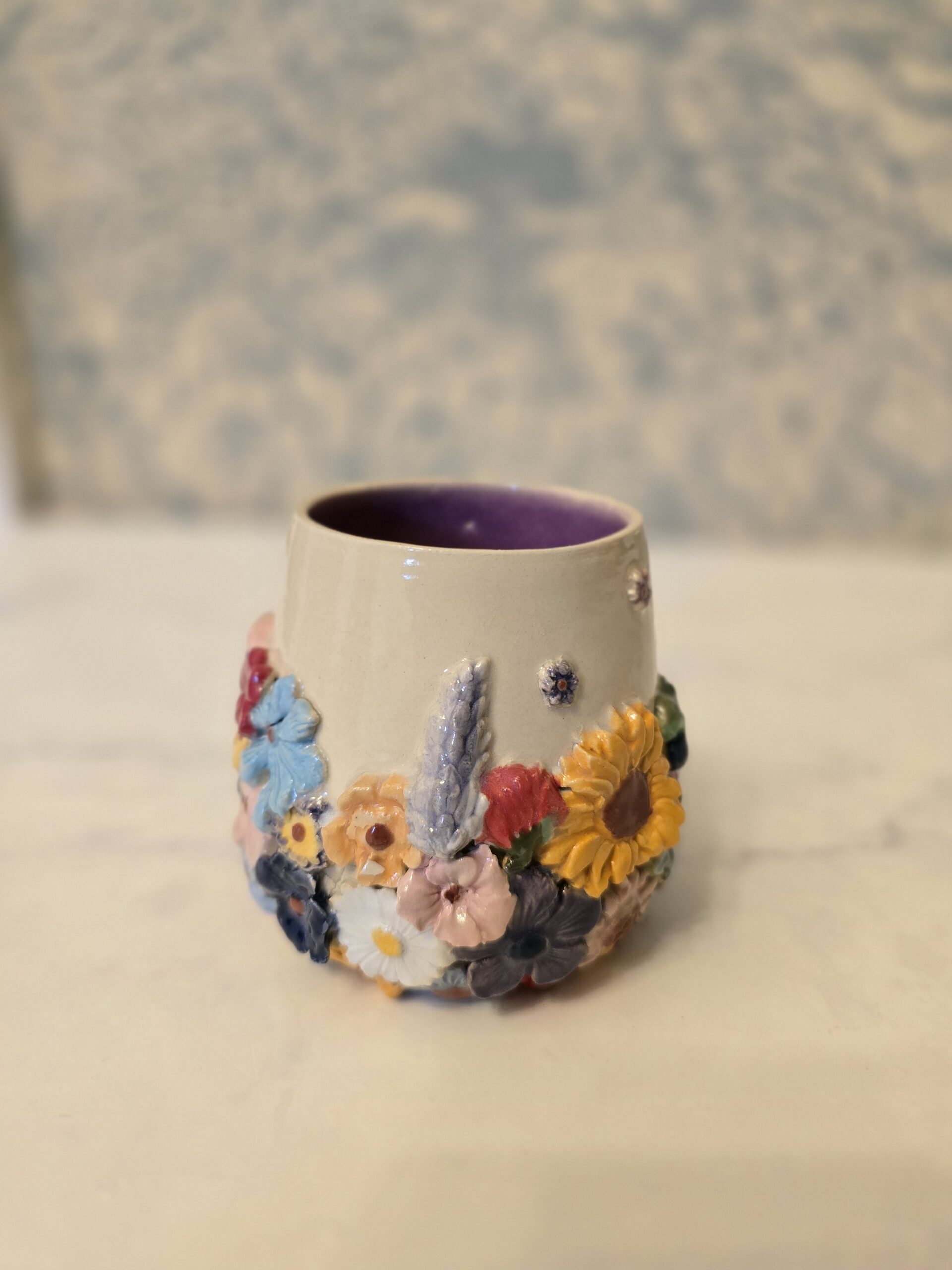 Denne farverige kop rummer ca. 2,5 dl og er dekoreret med smukke blomsterdetaljer, der giver et livligt og festligt udtryk.