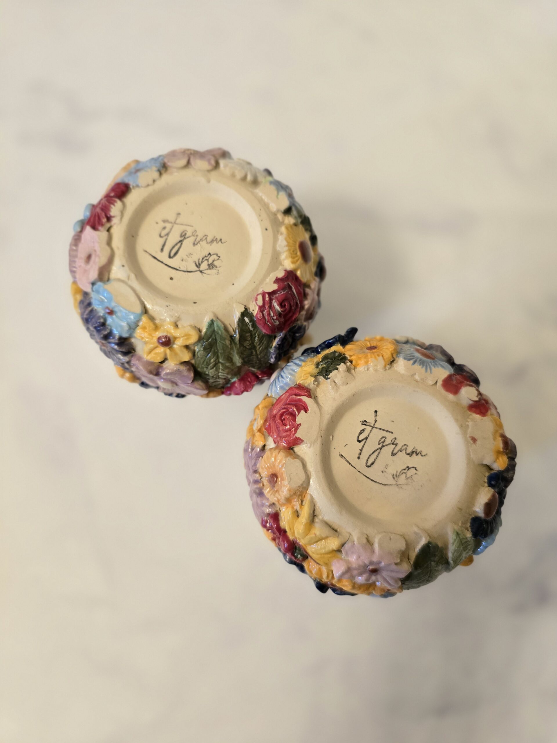 Oplev denne charmerende kop, der kombinerer funktionalitet med kunstnerisk flair. Med en kapacitet på ca. 2,5 dl er den ideel til servering af varme drikke som kaffe, te eller kakao. Den farverige blomsterudsmykning tilføjer et unikt præg, der vil glæde enhver bruger.