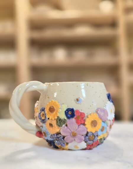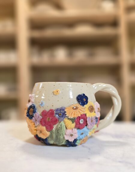 Denne farverige kop har et unikt blomsterdesign og rummer ca. 3,5 dl.