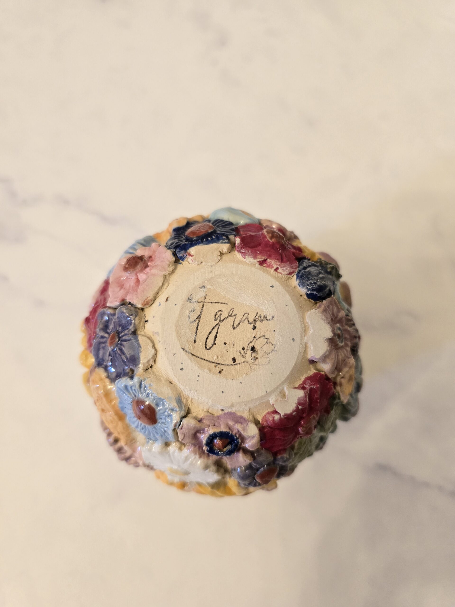 Denne farverige kop har et unikt blomsterdesign og rummer ca. 3,5 dl.