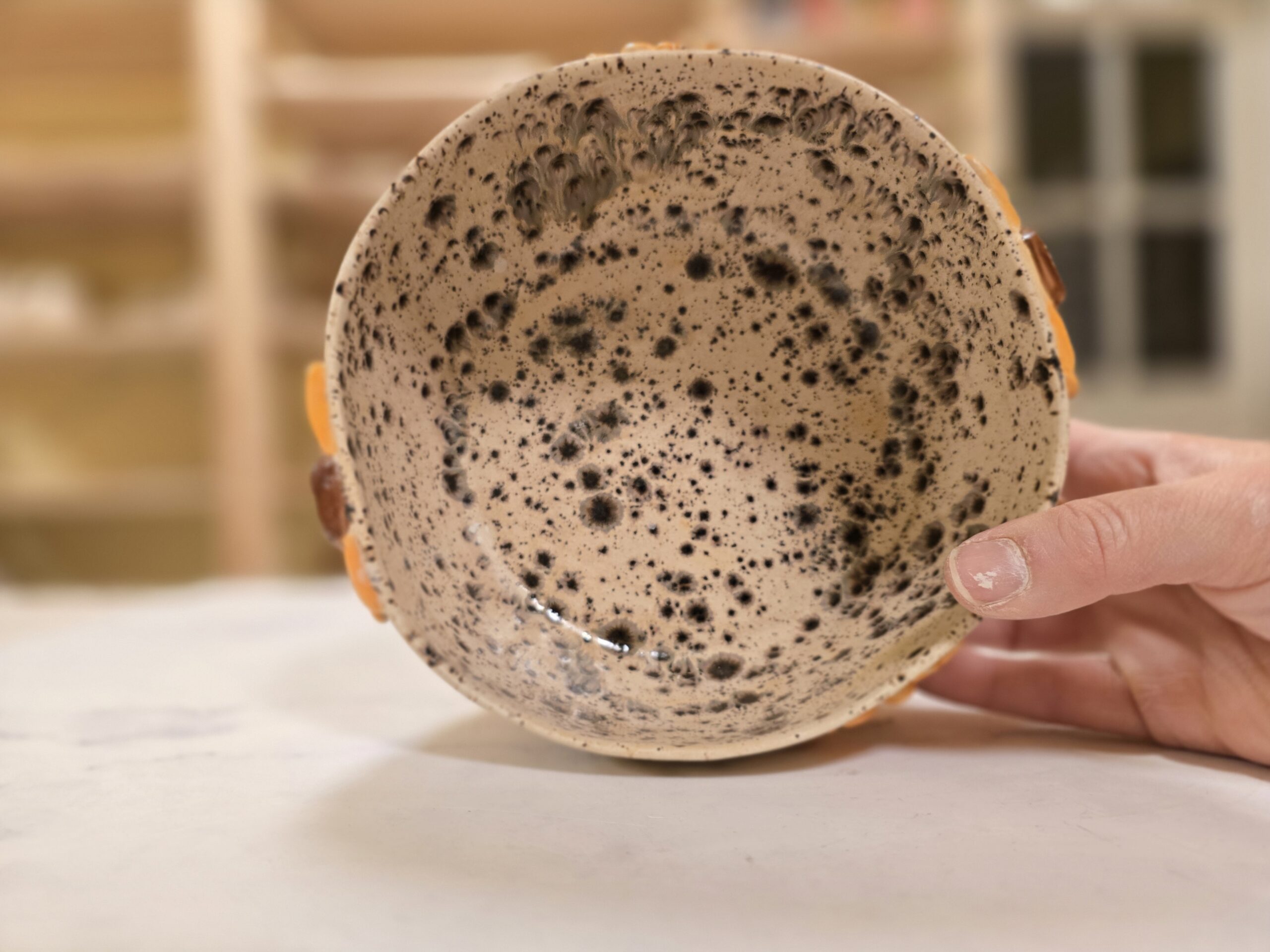Skålen er brændt ved høj temperatur og tåler både opvaskemaskine og mikroovn. Den er skabt til hverdagsbrug – men med et udtryk, der løfter borddækningen.