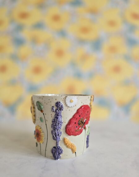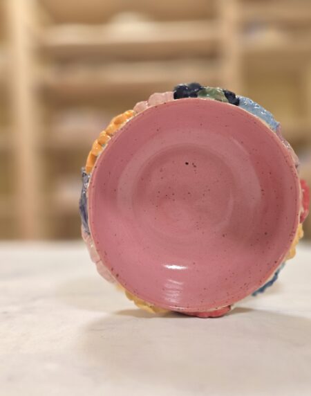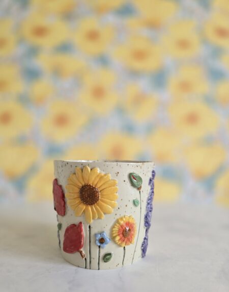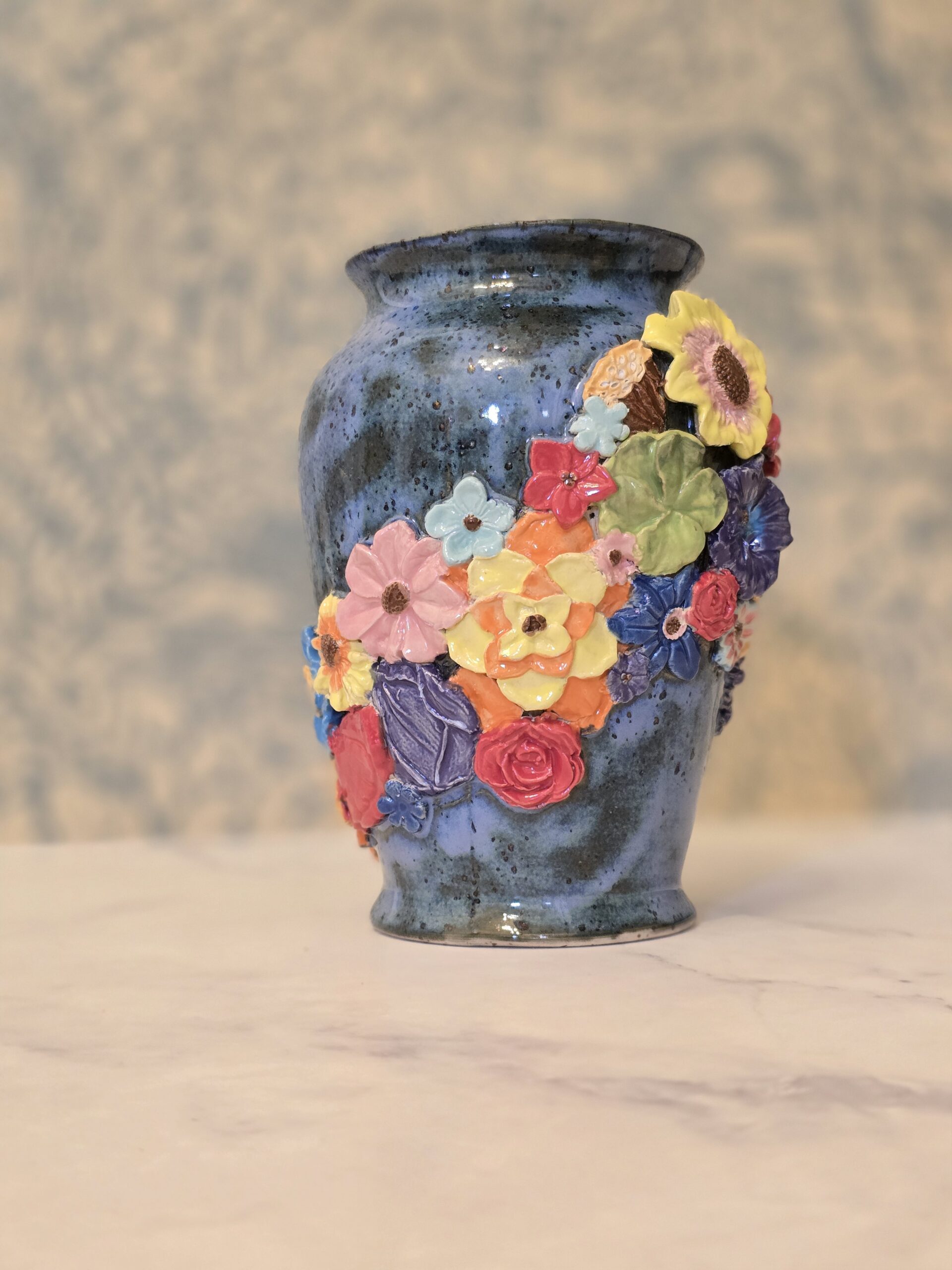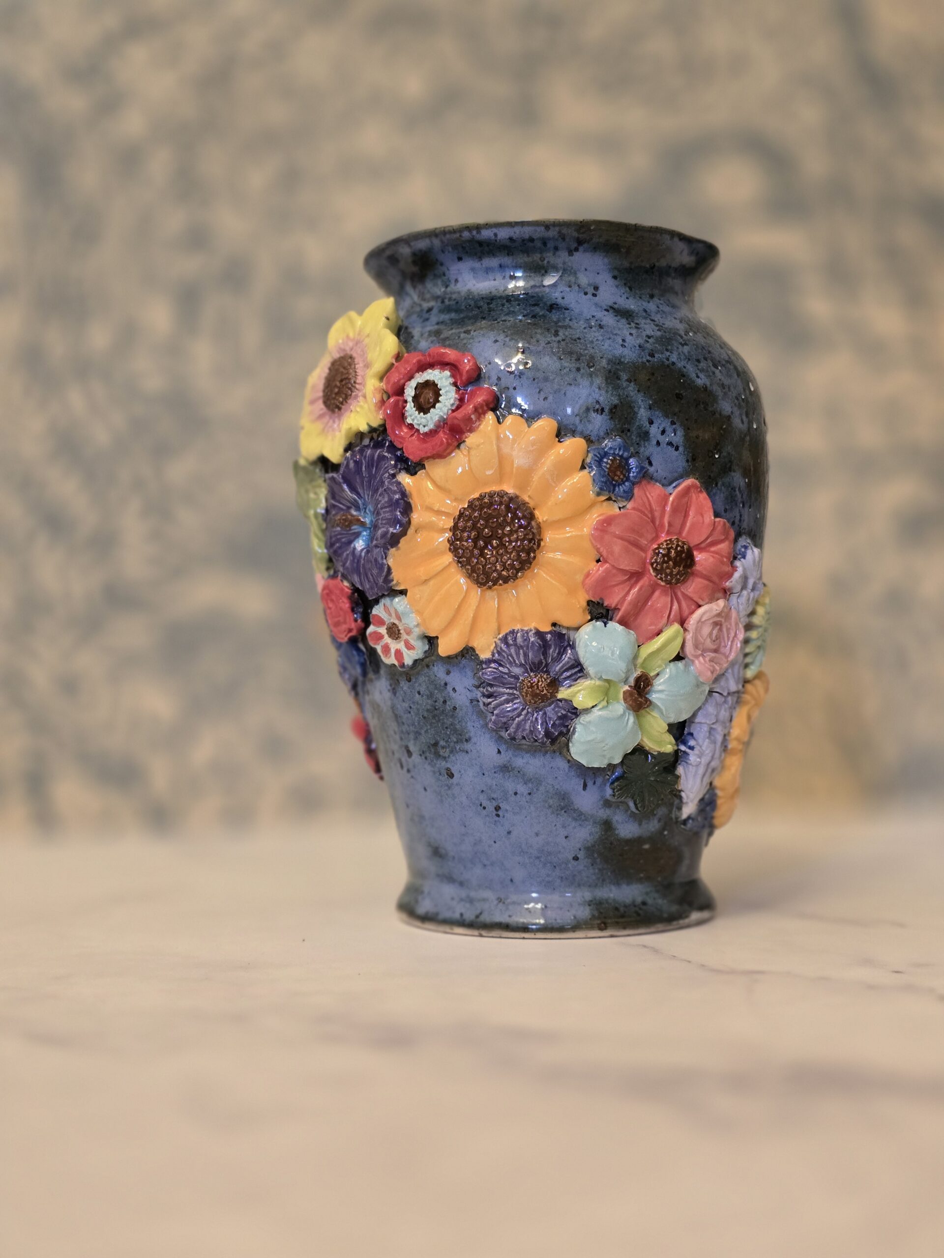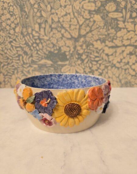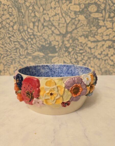 Vasen er lavet af stentøjsler, hvilket giver den både styrke og et elegant udseende. Den er prydet med et væld af farverige blomster, der bringer liv og farve ind i dit hjem. Den glaserede overflade tilføjer et smukt skær, der fanger lyset og tiltrækker opmærksomhed.